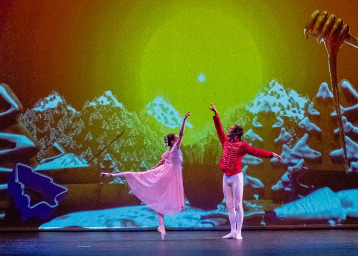 L’histoire de Casse-noisette à cheval sur le rêve et la réalité est alors sublimée. Les danseurs formés à l’Opéra de Paris interagissent avec les projections numériques d’objets et de personnages fantastiques issus du mythique ballet-féerie. La technologie sert la magie d’un monument musical et chorégraphique. La valse des flocons, la valse des fleurs, le pays des sucreries, les divertissements… le ballet de Casse-Noisette devient alors un terrain de jeu idéal à la créativité offert par le virtuel.