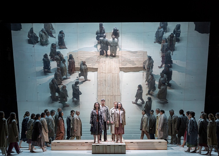 Pour cette version scénique créée à l’Opéra national de Bordeaux, le metteur en scène Stéphane Braunschweig propose une lecture épurée et profondément sensible. Dans un espace symbolique et mouvant, chœur et solistes traversent un paysage intérieur où se mêlent angoisse, espoir et désir de lumière. Sans jamais détourner l’attention de la musique, la mise en scène invite le spectateur à un voyage intime, au cœur de cette méditation universelle sur la vie, la mort et ce qui les relie.